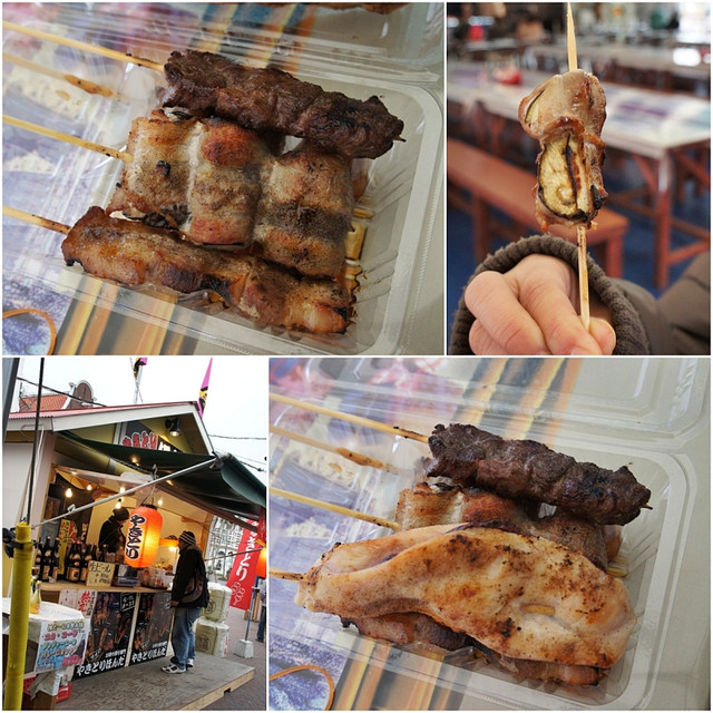這裡也能夠小憩一下,買路邊的烤肉、關東煮來吃