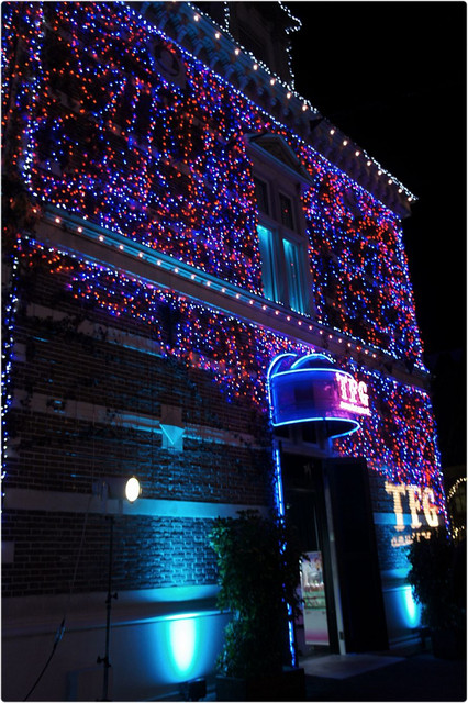 晚間的時候這裡會跟著音樂舞動七彩的炫彩燈光秀!