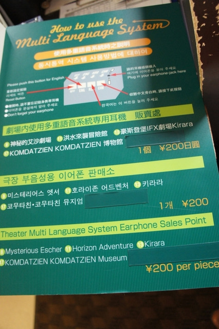 有中文發音的有: 神秘的艾莎劇院、洪水來襲冒險館、ifx劇場