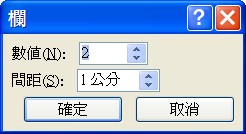 按下此指令按鈕,並將欄數設為2而將間距設為1公分翻譯